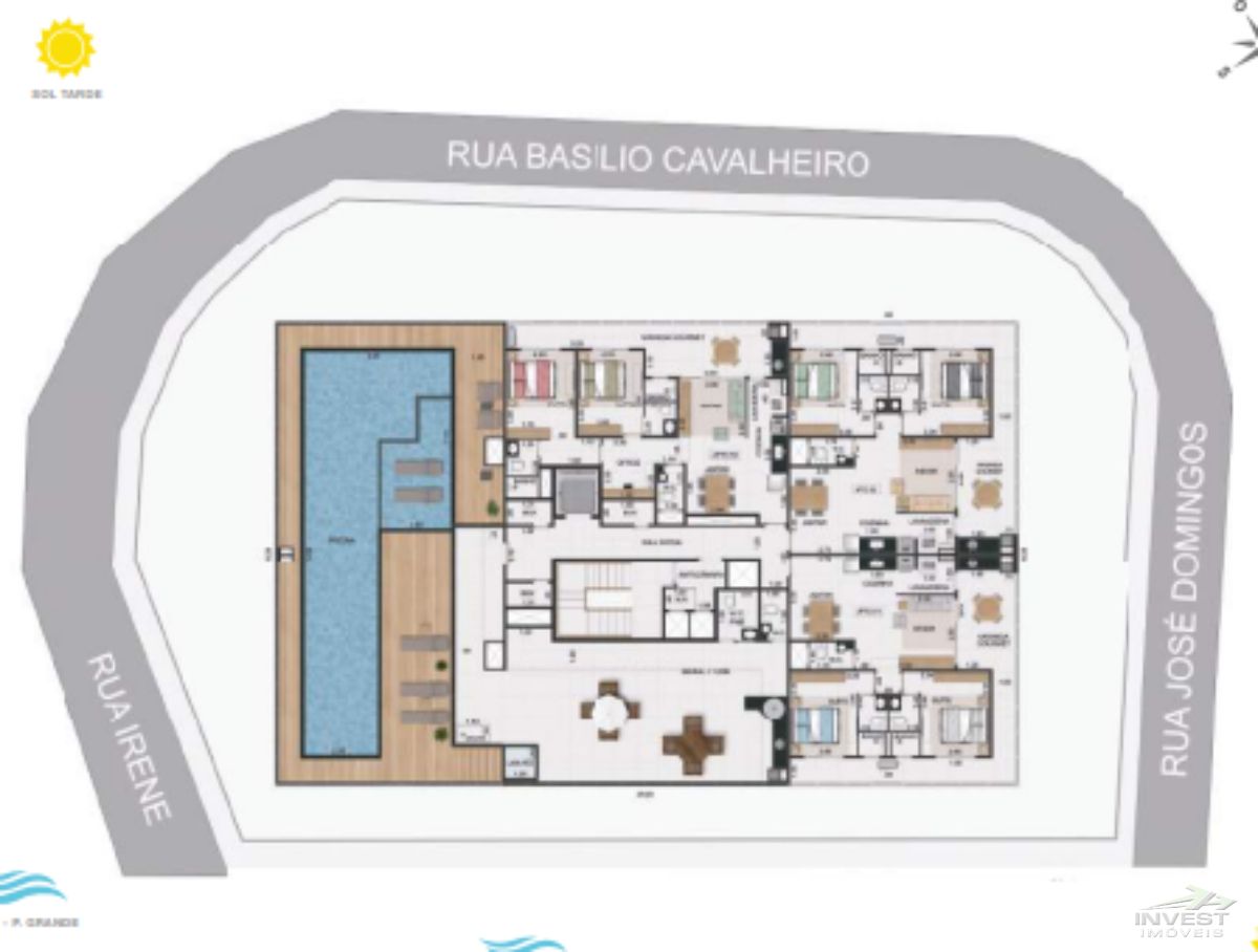 Ubatuba, Tenório - Apartamento com 02 suíte, lavabo, espaço home office, 1 armário náutico, 2 vagas de garagem, lavanderia, Sala e sala de estar, cozinha, deck + piscina com prainha e raia de 16 metros, solário, área Gourmet com Churrasqueira e forno de pizza, varanda gourmet, Infraestrutura para Ar condicionado, armário náutico no mesmo andar do apartamento.