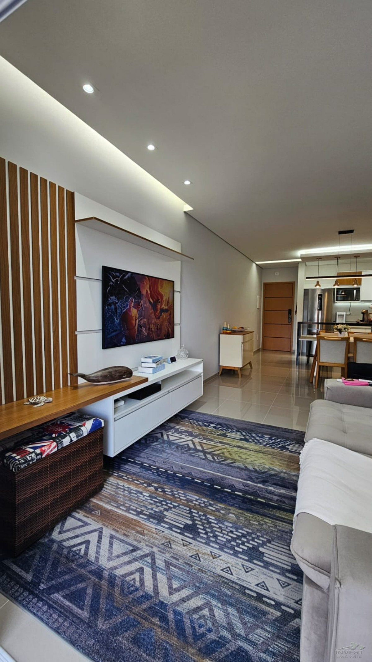 O imóvel possui 2 dormitórios, sendo 1 suíte avarandada, sala dois ambientes, integrada com a varanda gourmet, cozinha planejada integrada com as salas, banheiro social, área de serviço, 2 vagas de garagem cobertas e armário náutico.