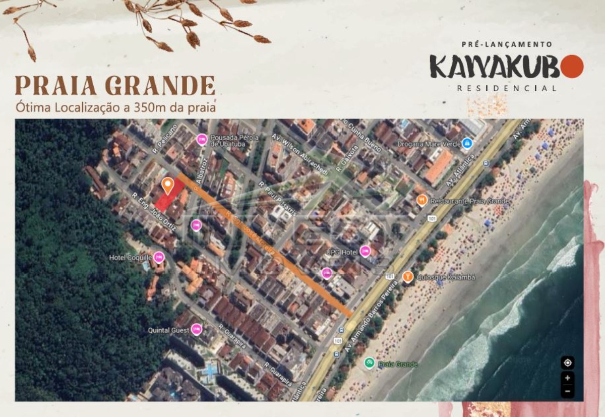 A localização privilegiada, próxima à praia, complementa a proposta de um estilo de vida agradável e acessível.