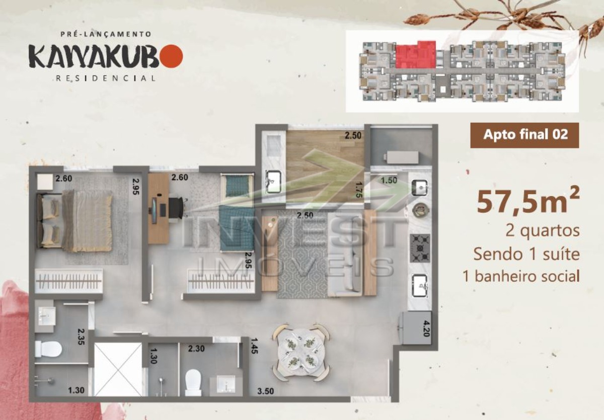 Área Útil 57 m²
