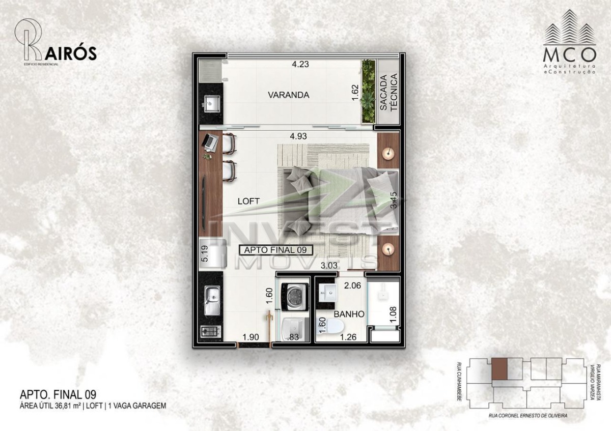 área útil de 36 m², é uma oportunidade única para quem busca um espaço funcional e bem distribuído.